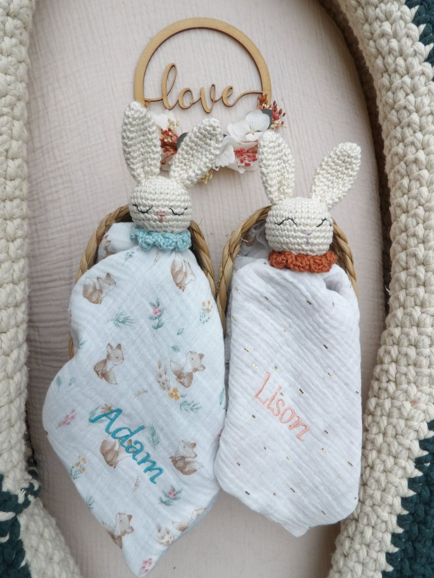 Offrez à votre bébé un compagnon unique et tout en douceur avec ce doudou entièrement conçu à la main. Sa tête et sa collerette sont crochetées avec un fil 100 % coton, pour garantir un maximum de confort et de sécurité.